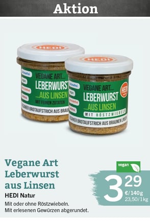 Vegane Art Leberwurst mit feinen Zutaten, Hedi Natur, 140 g| EUR 3,29